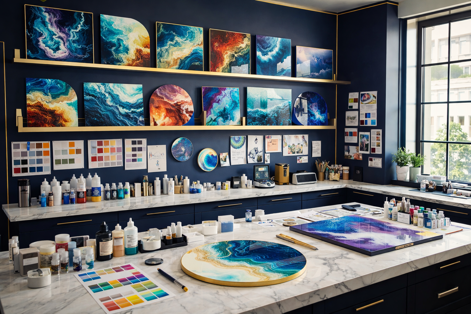 Materials & Tools Epoxy resin (Part A) and hardener (Part B) — follow manufacturer ratio (common: 1:1 or 2:1) Pearlescent mica powders, glow-in-the-dark powder, or alcohol inks (colors: blue,...